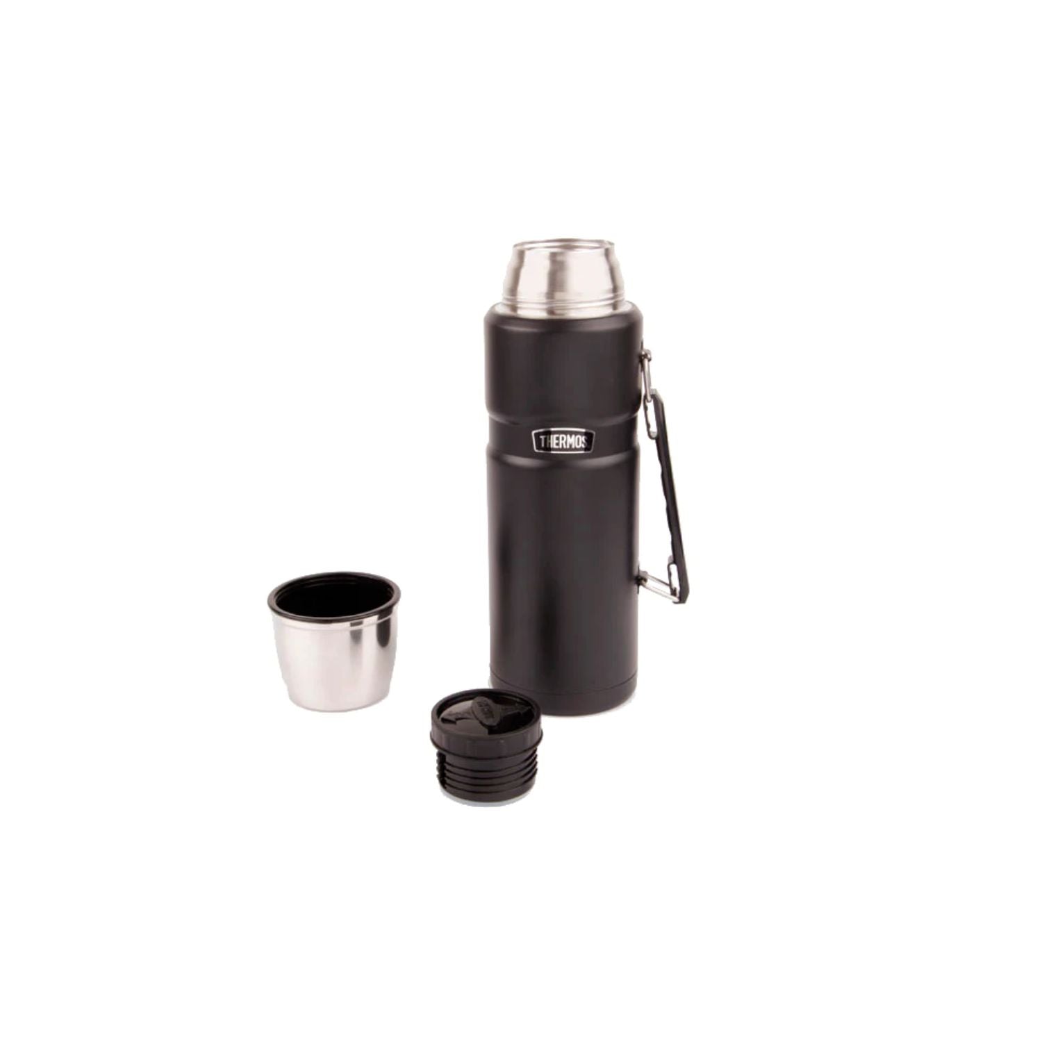 Descubre la excelencia en movilidad con el Termo Líquido King Thermos de 1,2 litros en negro. Su innovador diseño y tecnología de aislamiento al vacío mantienen tus bebidas a la temperatura ideal. Construido con acero inoxidable de doble pared y una cómoda tapa giratoria, este termo ofrece durabilidad y facilidad de uso, mientras que el asa de transporte añade comodidad en tus viajes y paseos. Disfruta de la experiencia Thermos donde quiera que vayas.